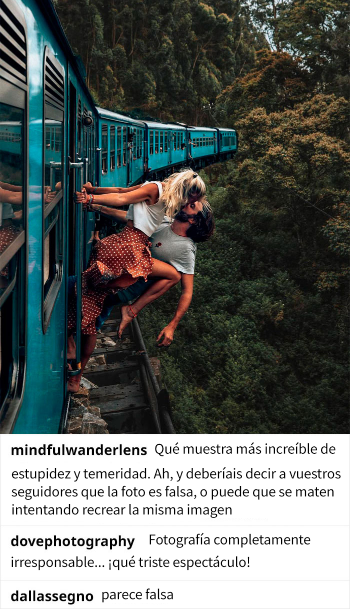 Unas personas se tomaron una foto colgando de uno de los “trenes azules” en Sri Lanka hace unos años, y ahora los trenes están llenos de occidentales que intentan capturar la misma toma. La pareja belga, Camille y Jean, conocidos como backpackdiariez en Instagram, solo tuvieron que llevar la idea original un paso más allá y aumentar el factor de riesgo.