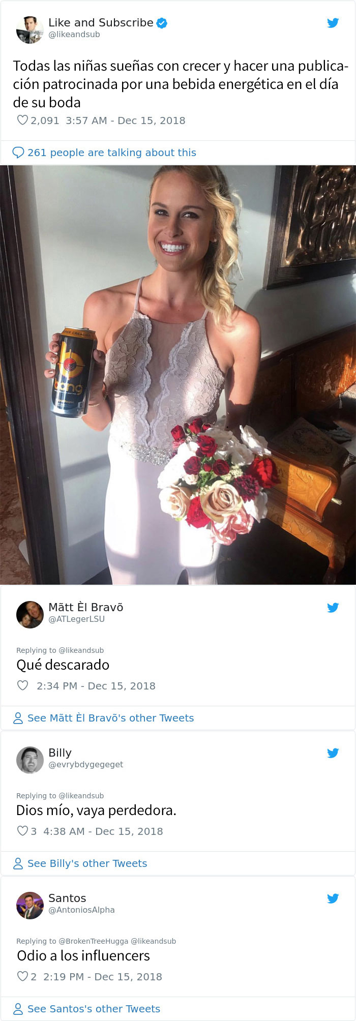 12. Todas las chicas sueñan con crecer y hacer una publicación patrocinada por “Bang Energy Drink” en el día de su boda.