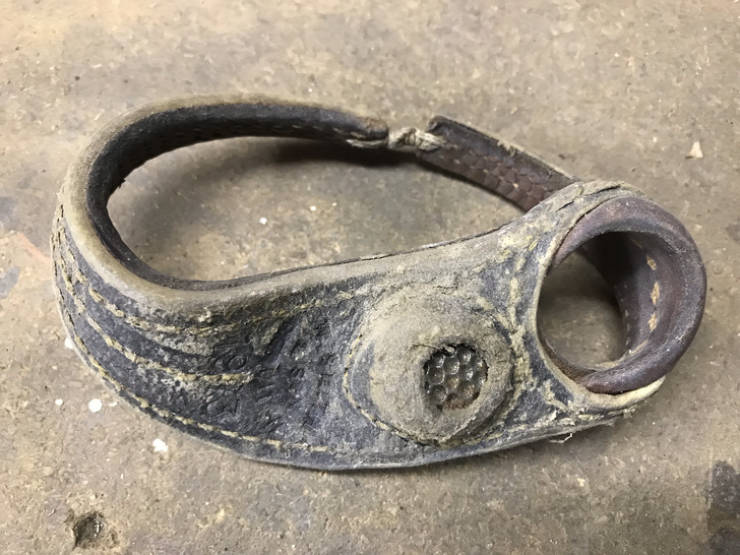 «Es un cinturón de cuero que ayuda a pasar una aguja a través de un material rígido. Aquí puedes ver cómo se usa.»