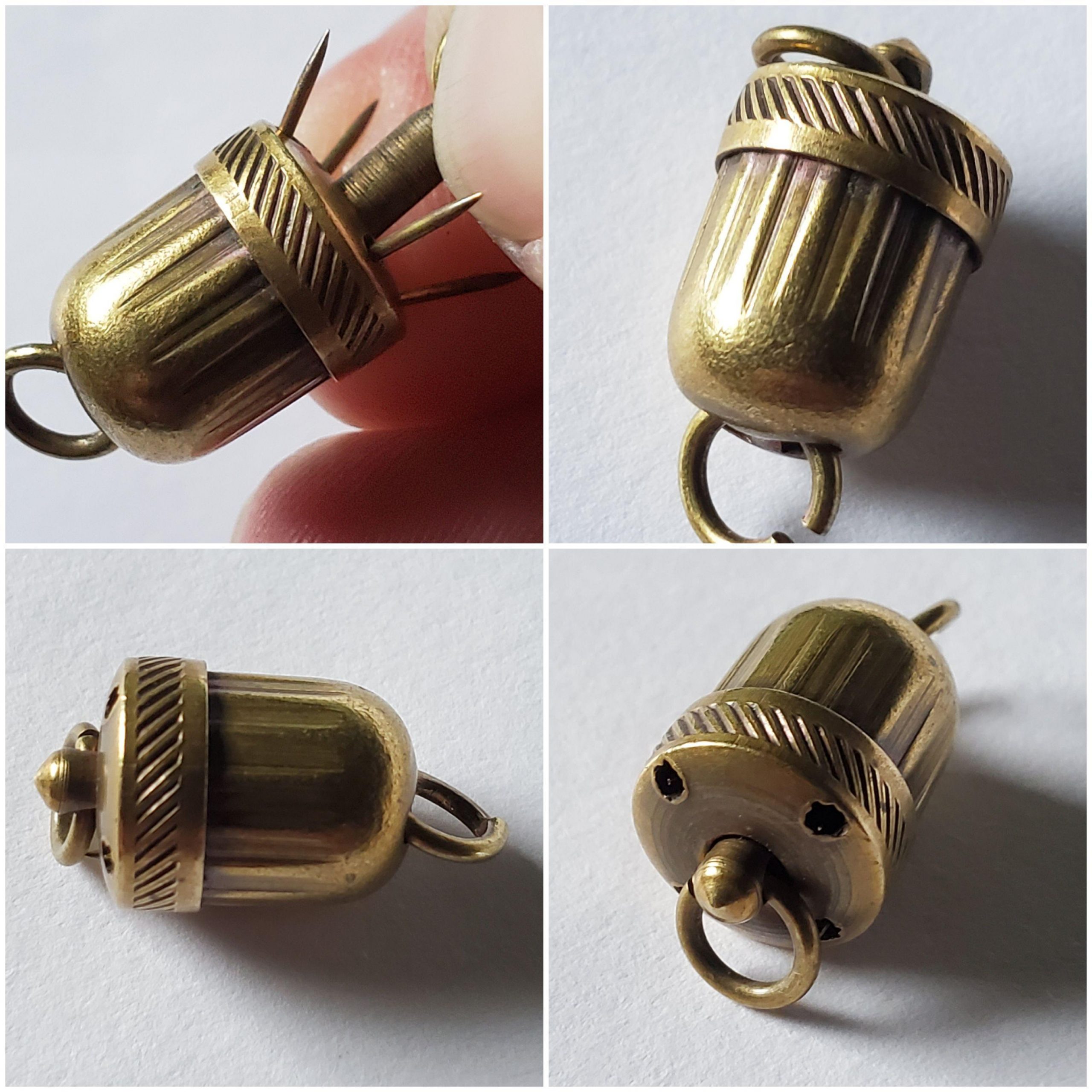 «Es un dispositivo antirrobo para relojes de bolsillo. Cuando se tira del reloj, los picos se extienden, evitando que te lo quiten y, bueno, advirtiéndote del intento de robo.»