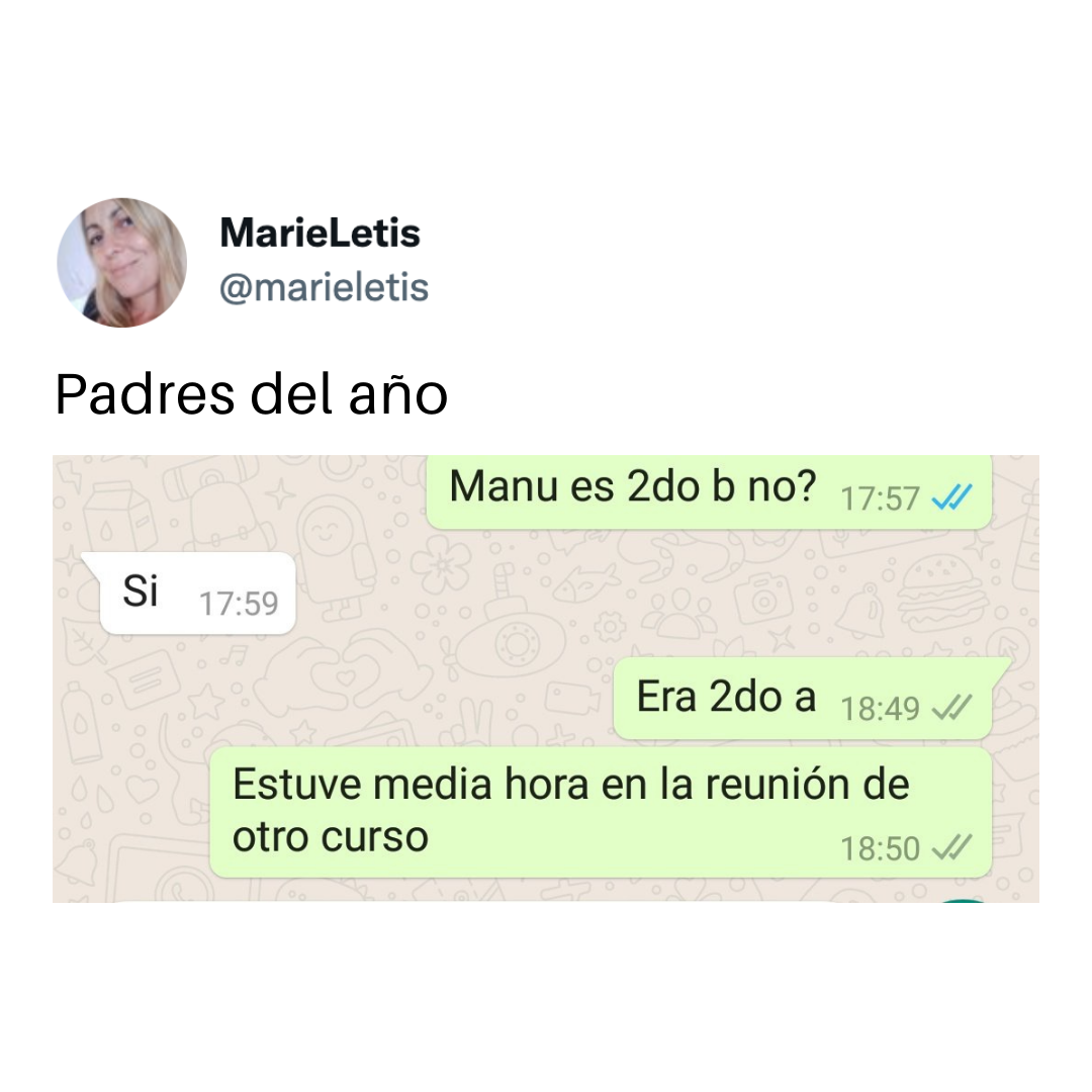 Le pedí a mi esposo que llevara a los niños al colegio. Al rato comenzó a enviarme mensajes avisándome de que los traía de vuelta porque el centro estaba cerrado y no sabía por qué. Resulta que era el Día del Maestro. Y yo, maestra, muy tranquila, durmiendo en mi feriado. Fuente.