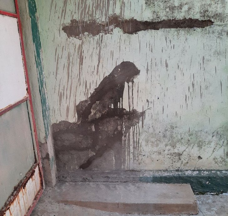 7. “Las manchas de cemento de la reciente remodelación de mi casa se parecen a un león al borde de un acantilado”.
