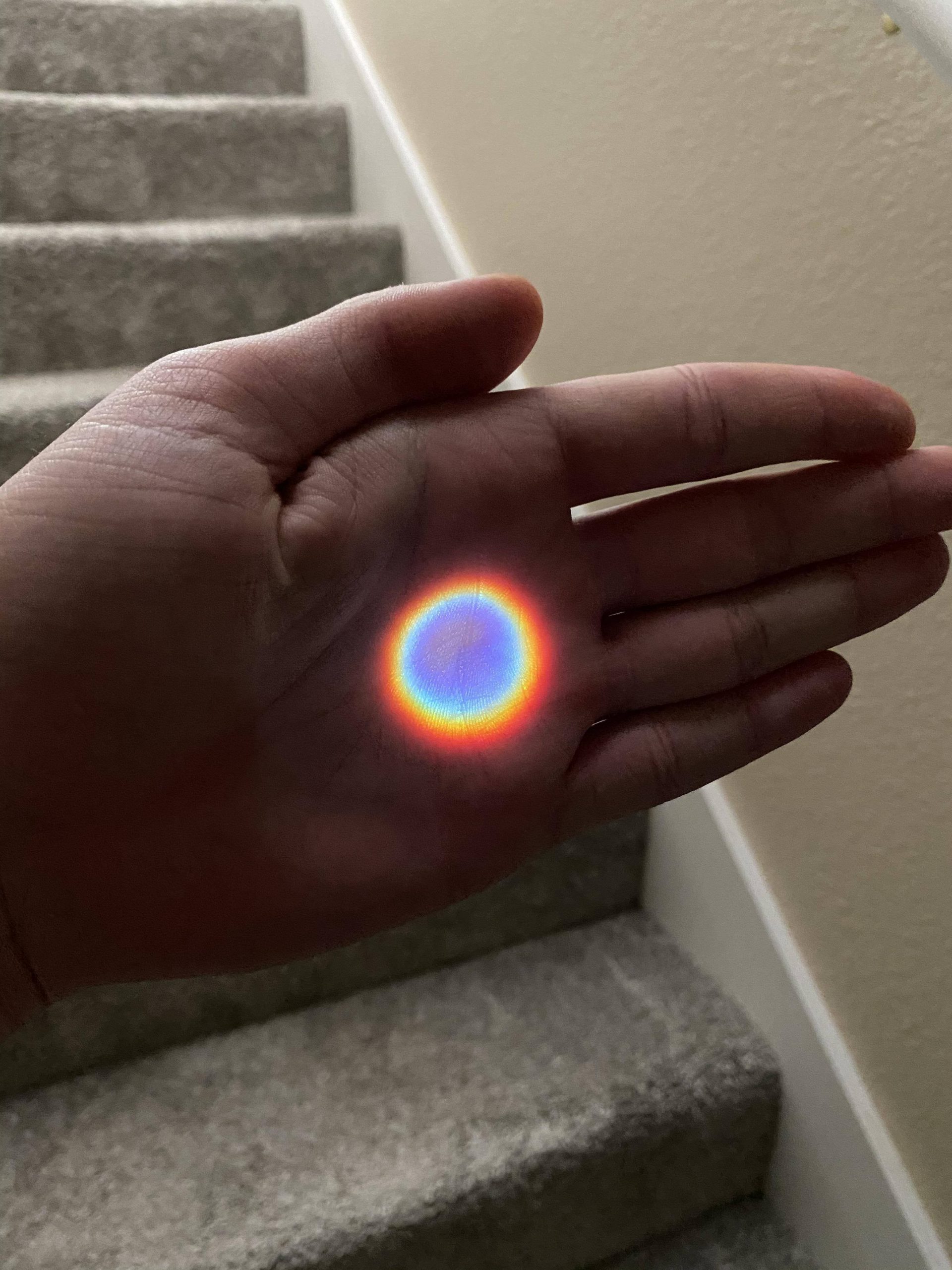 2. «Un arco iris perfectamente circular hecho por la mirilla de mi puerta durante la puesta de sol.»