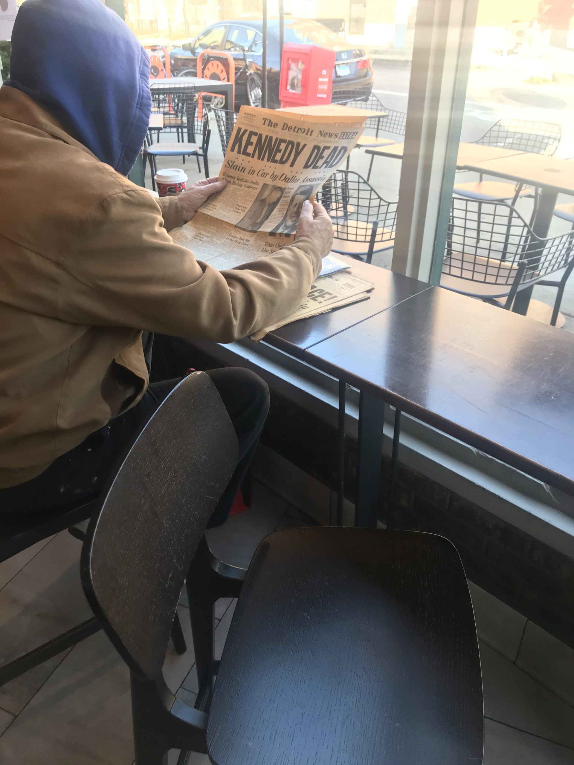 14. «Este tipo en un Starbucks leyendo un periódico … de 1963.»
