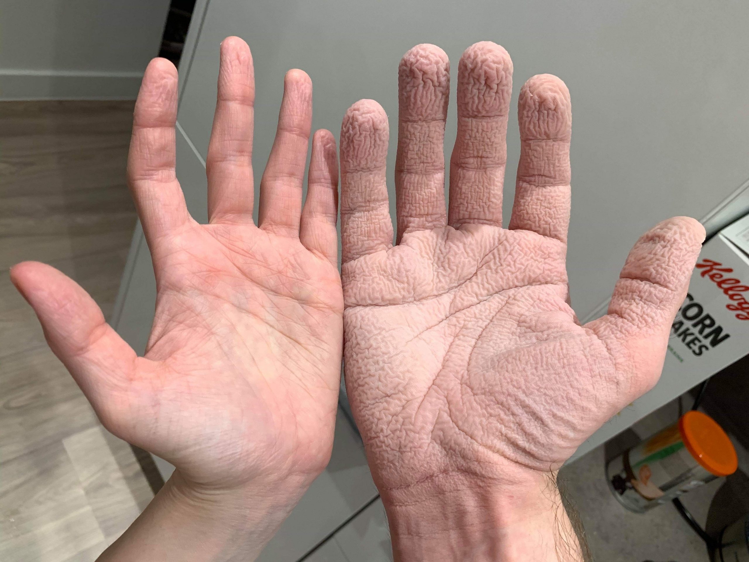 18. «Mis manos y las de mi mujer después de lavar los platos juntos.»