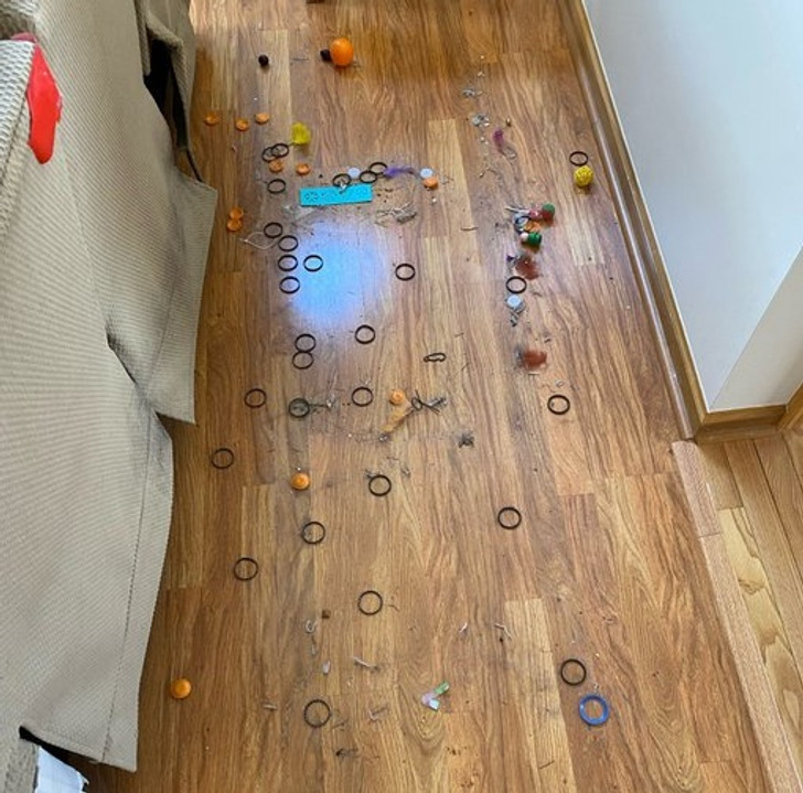 4. “Mi padre encontró el escondite de nuestra gata mientras movía el sofá”.