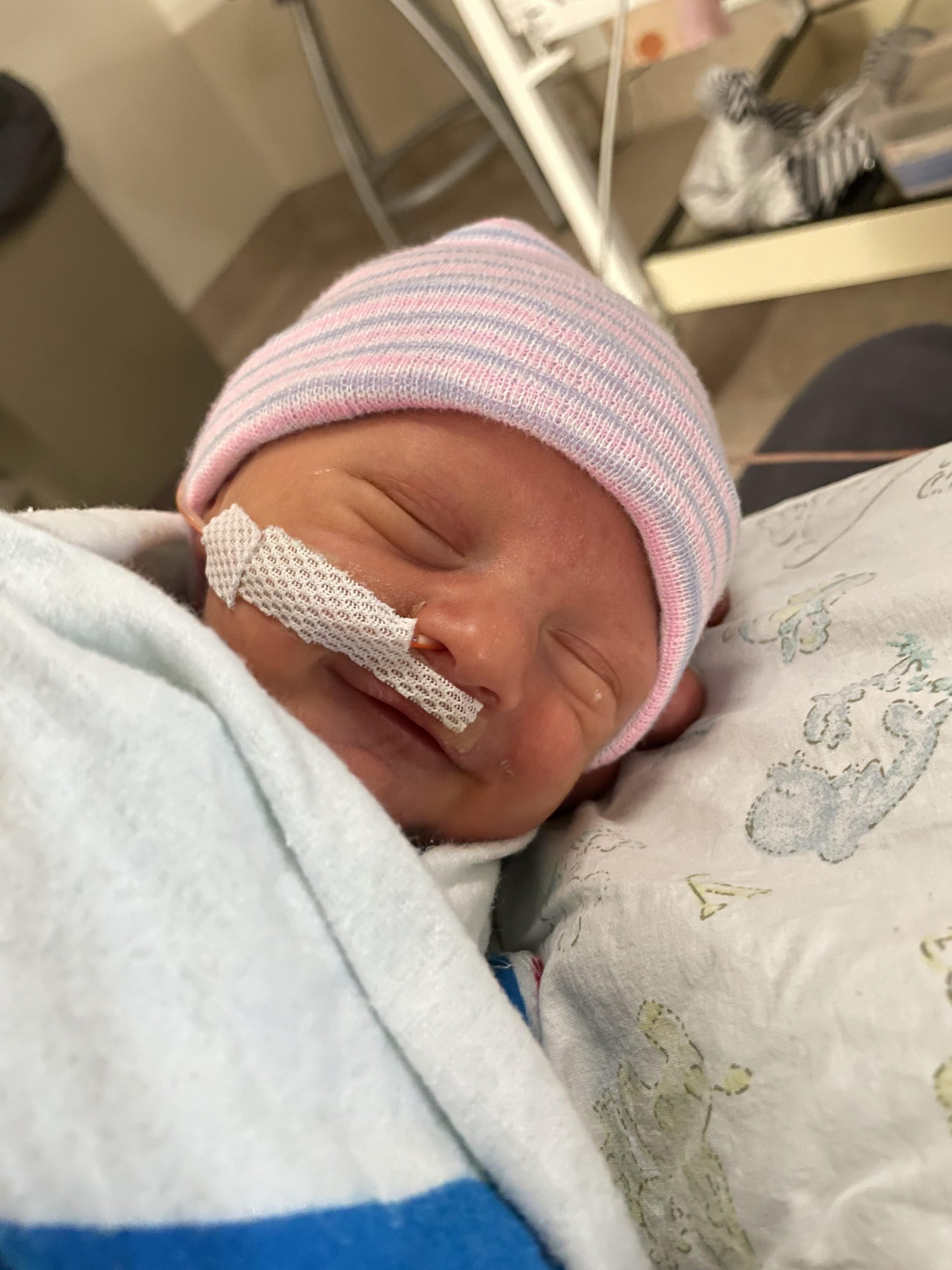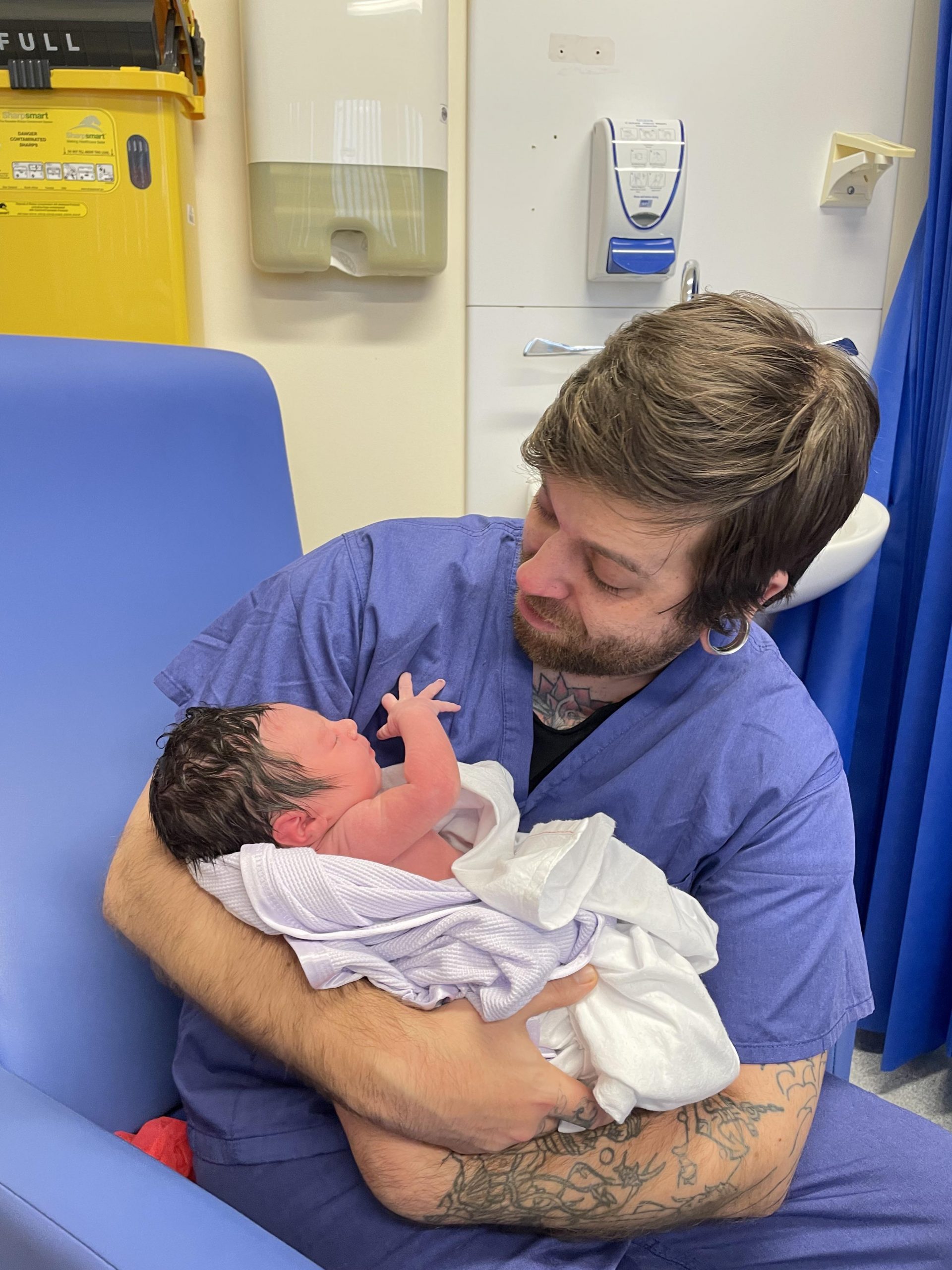 13. «Mi esposo sostiene a nuestra hija por primera vez.»