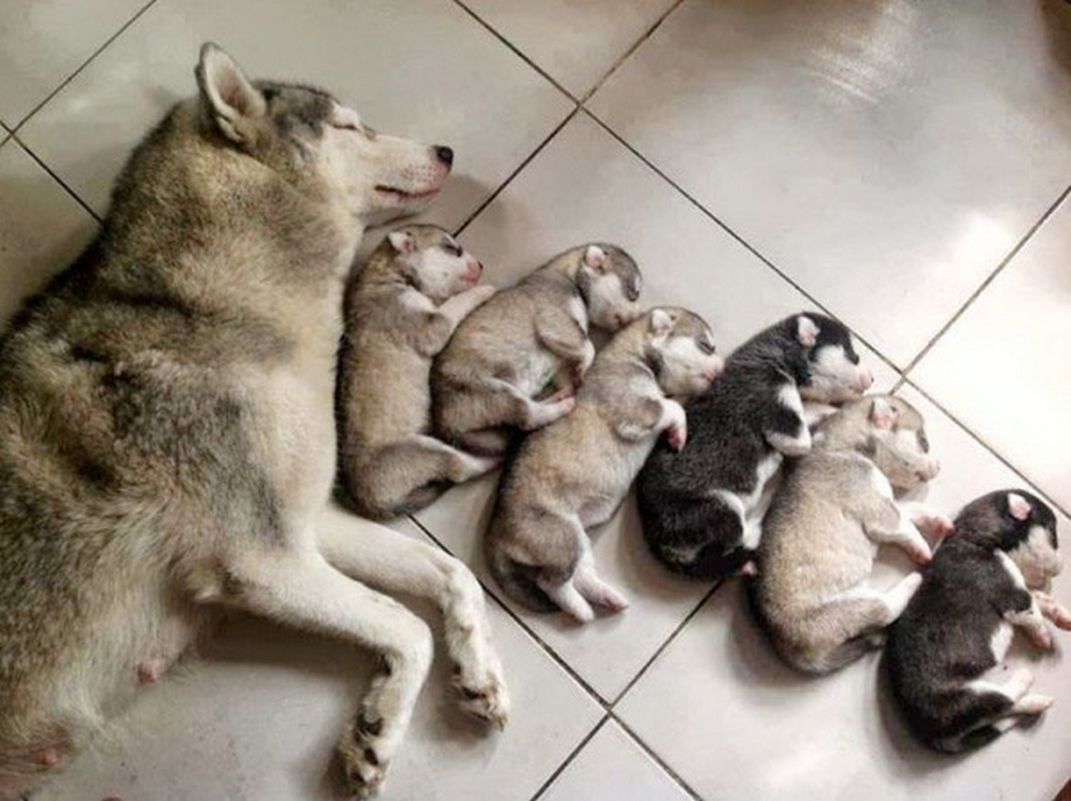 18. «¡Snickers es una mamá orgullosa (y nerviosa) de 6 adorables cachorros!»