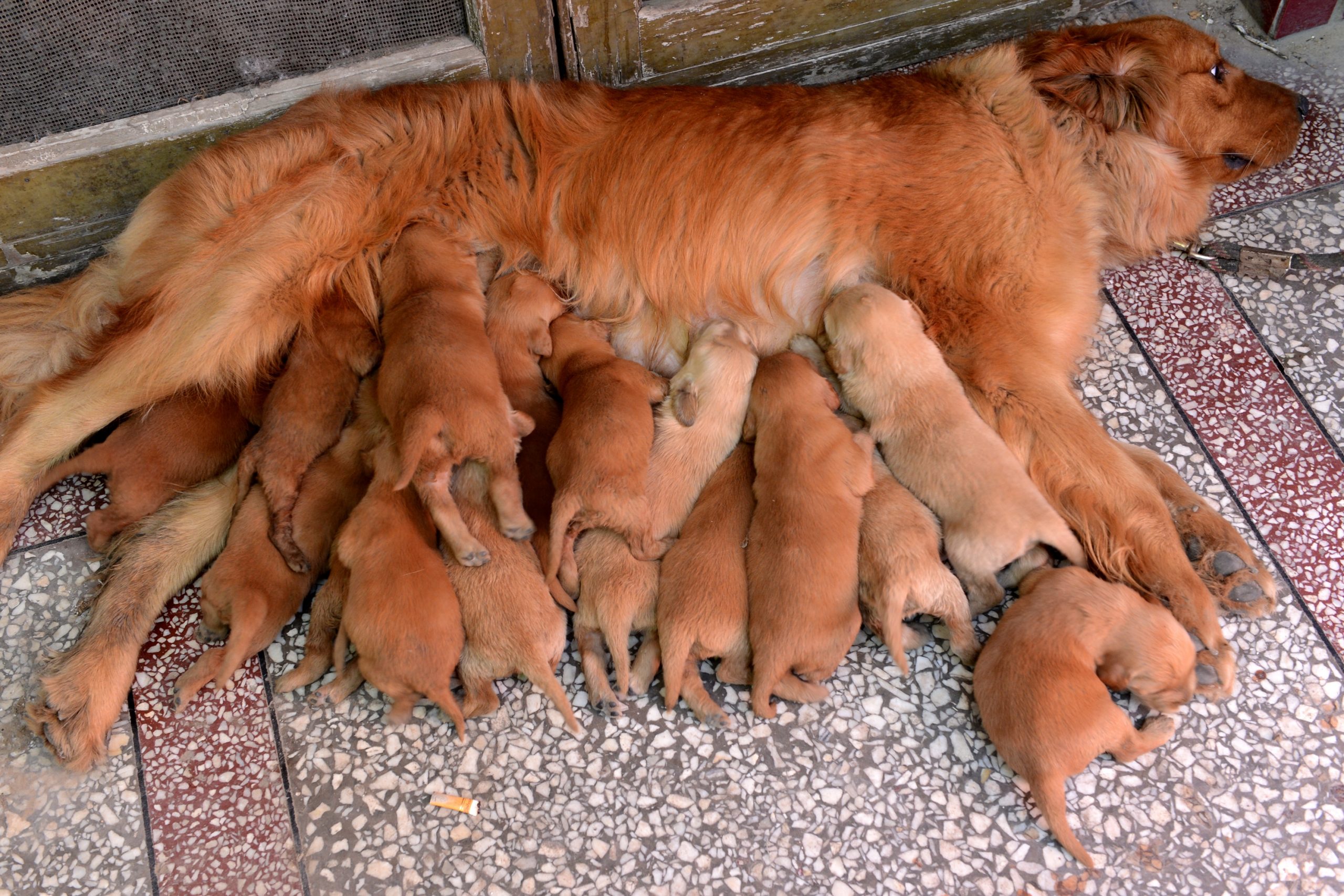 16. «Mi golden retriever y sus cachorros de 3 días.»