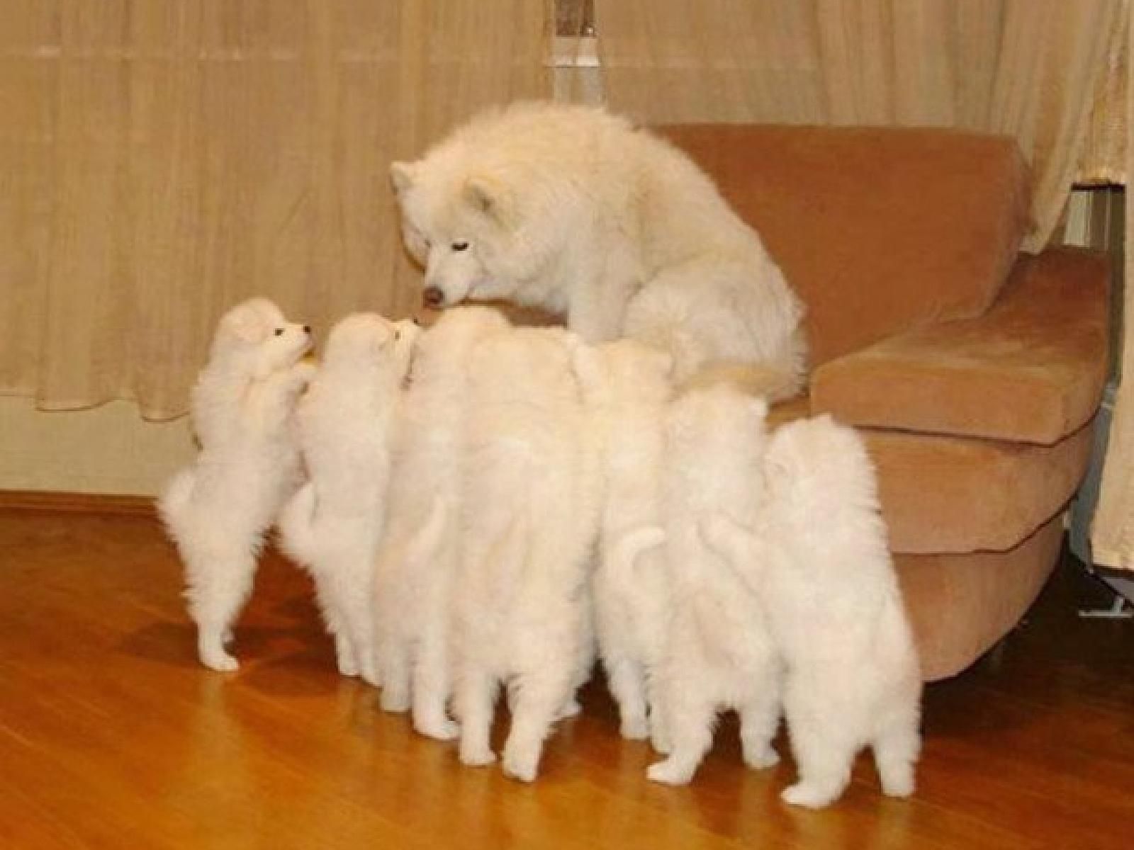 12. «Seis dulces cachorros sentados con su madre.»