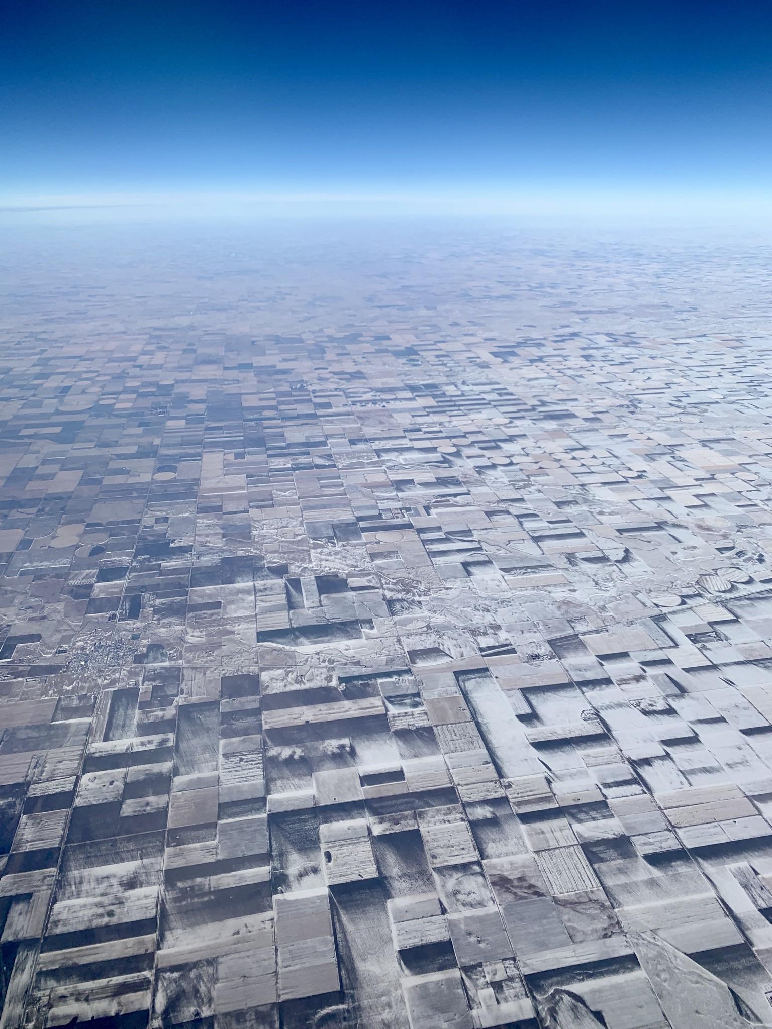 7. «Estas tierras de labranza en la planicie del este de Colorado con parches de nieve derretidos por el viento crean una loca ilusión en 3D.»