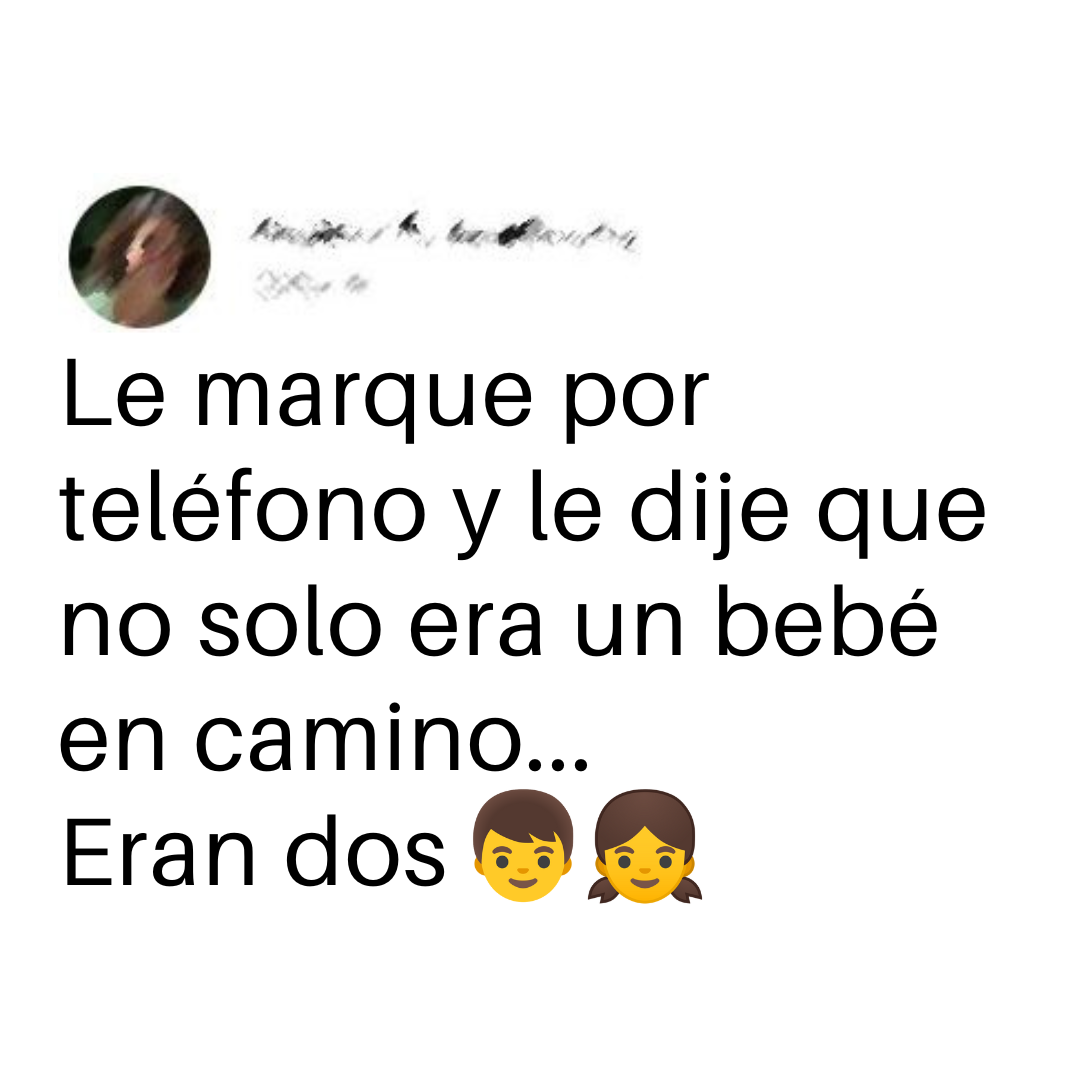 Básicamente solo le felicité el cumpleaños, y le dije que en 8 meses le daría su regalo (ya llevaba más de un mes embarazada, pero no sé lo había dicho). Él se quedó callado, y me dijo: «¿Cómo? No entiendo…» Le dije «Bueno, es que todavía no lo tengo listo», ¡y ahí se dio cuenta! Fuente.