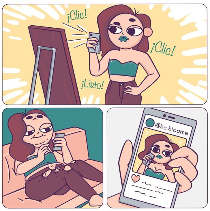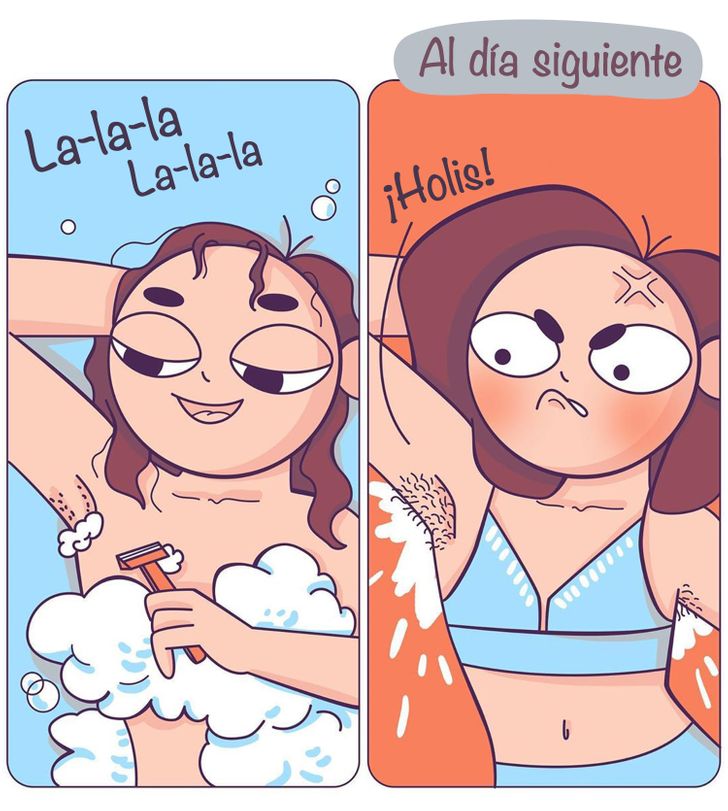 La ilustradora Hanna, autora de los cómics BlooMe, tiene la capacidad de tratar este tipo de situaciones sin perder el sentido del humor. Sus tiras cómicas se han convertido en un fenómeno mundial, ya que la mayoría de las mujeres se sienten muy identificadas. Aquí tienes algunas de sus ilustraciones más conocidas, ante las que solo podemos decir una cosa: «Me identifico completamente».