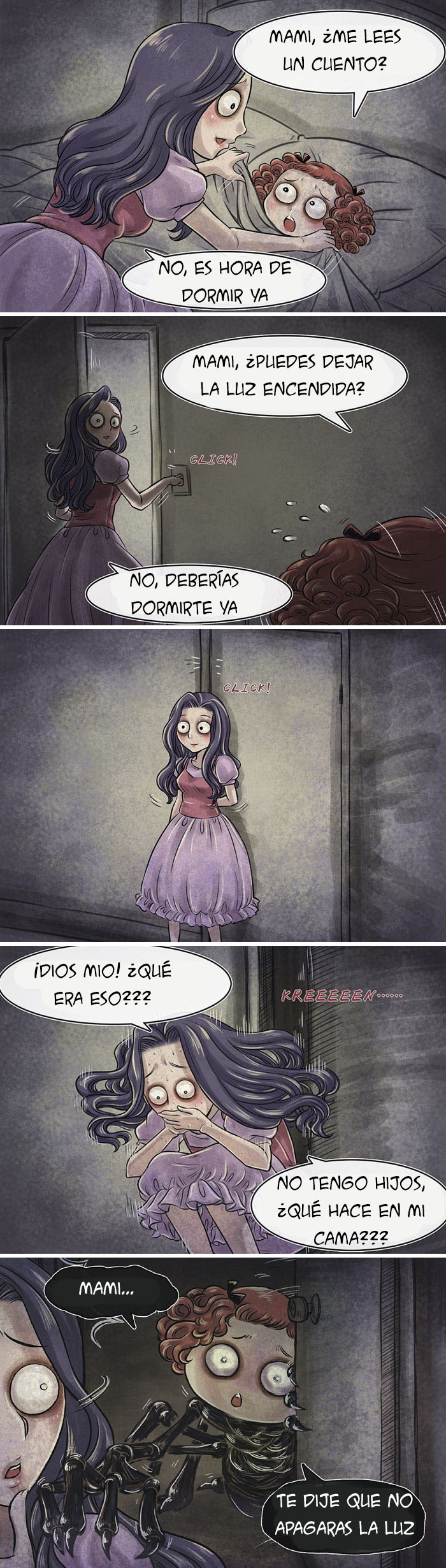 Lo sabe bien el artista Edd Lai, que se ha hecho conocido ilustrando este tipo de historias. Lai es responsable de mostrarnos una serie de historias terroríficas, para arrojar algo de tenebrosidad en nuestras vidas. Sus ilustraciones mezclan lo real y lo irreal, algo que este taiwanés de 29 años logra a través de autor de unos cómics muy cortos… pero completamente inmersivos.